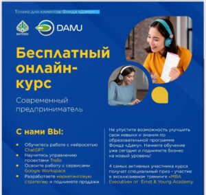 «Даму» кәсіпкерлікті дамыту қоры» АҚ және EY Бизнес академиясы (Кавказ және Орталық Азия) бірлесіп ұйымдастыратын тегін білім беру бағдарламасына қатысуға шақырамыз.