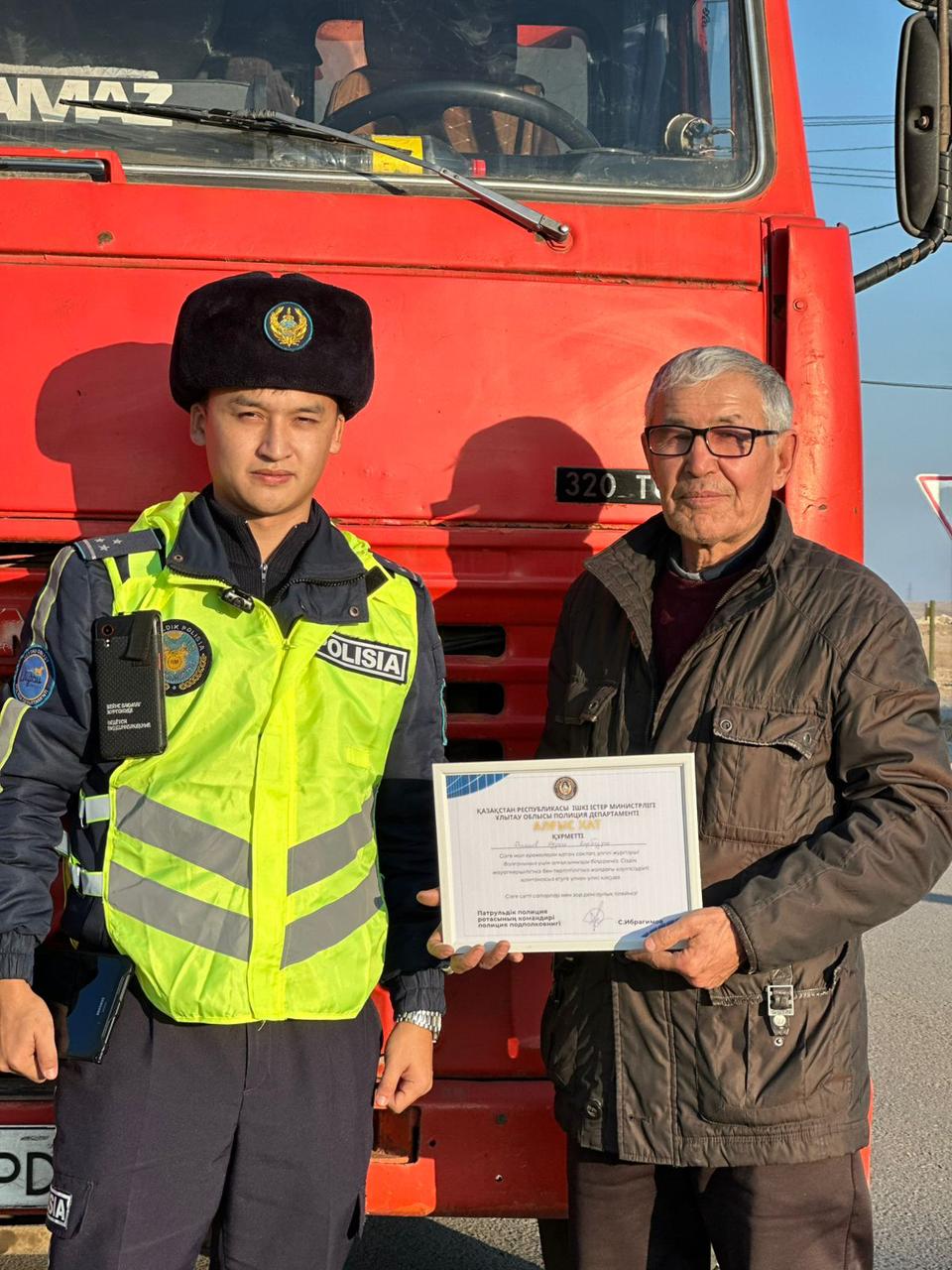 Шара аясында жол жүру ережелерін бұзбаған бірнеше көлік иесі тоқтатылып, инспекторлар оларға алғыс білдіріп, жолда абай болуды және осы үлгілі тәртібін жалғастыруды сұрады.