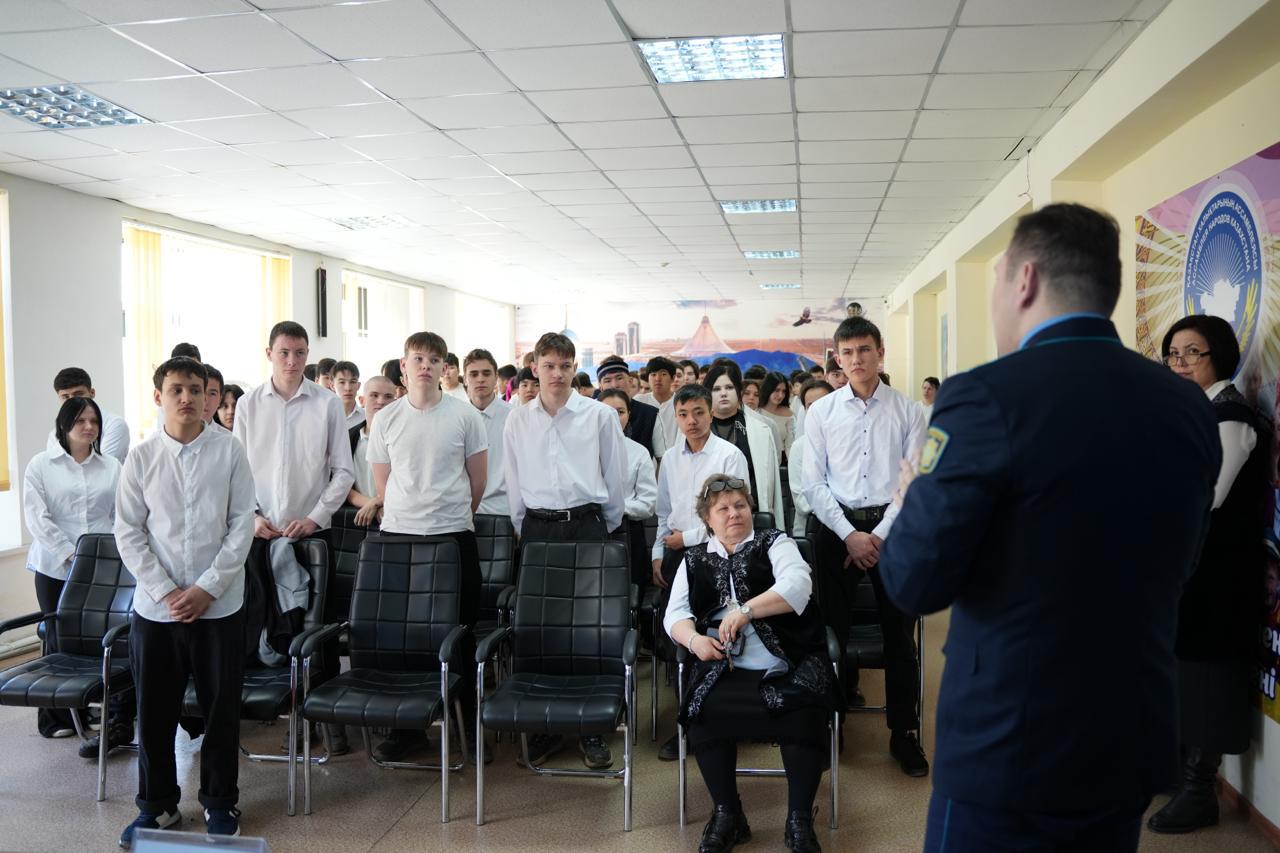 Облыс прокуратурасы «Заң мен тәртіп» қағидаты аясында білім беру ұйымдарының студенттеріне арналған есірткі тұтынуға қарсы іс-қимыл тақырыбында шолу дәрісін ұйымдастырды.