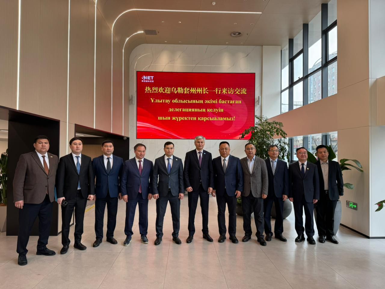Сонымен қатар сапар аясында Ұлытау облысының әкімі Шэньси халықаралық сауда-экономикалық тобына (Shaanxi International Economic and TradeGroup) барып, ұйым басшылығымен кездесті. Қазіргі уақытта провинциядағы ірі мемлекеттік компанияның бірі. 80 толық еншілес және холдингтік ұйымы бар, қызметкер саны 2500-денасады. Кездесу барысында директорлар кеңесінің төрағасы Ван Тяньсюнмен инвестициялық ынтымақтастықты дамыту, бірлескен жобаларды іске асыру және өзара тиімді әріптестікті кеңейту мәселелері талқыланды.