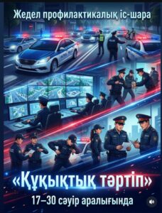 Ұлытау облысында қоғамдық қауіпсіздікті қамтамасыз ету және құқық бұзушылықтардың алдын алу мақсатында 17–30 сәуір аралығында «Құқықтық тәртіп» жедел профилактикалық іс-шарасы өткізілуде.